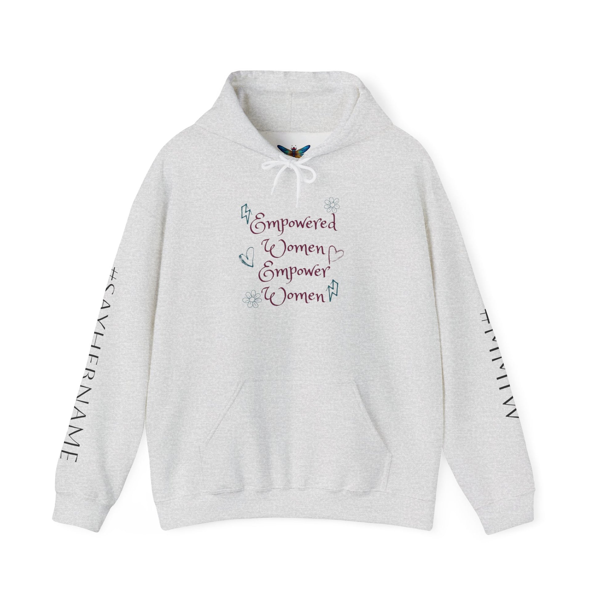 Empowered Women Empower Women Hoodie Sweatshirt featuring powerful messages #MMIW #SAYHERNAME. This cozy and stylish hoodie is perfect for women who support empowerment and want to make a statement. Ideal for casual wear, activism events, protests, and marches.